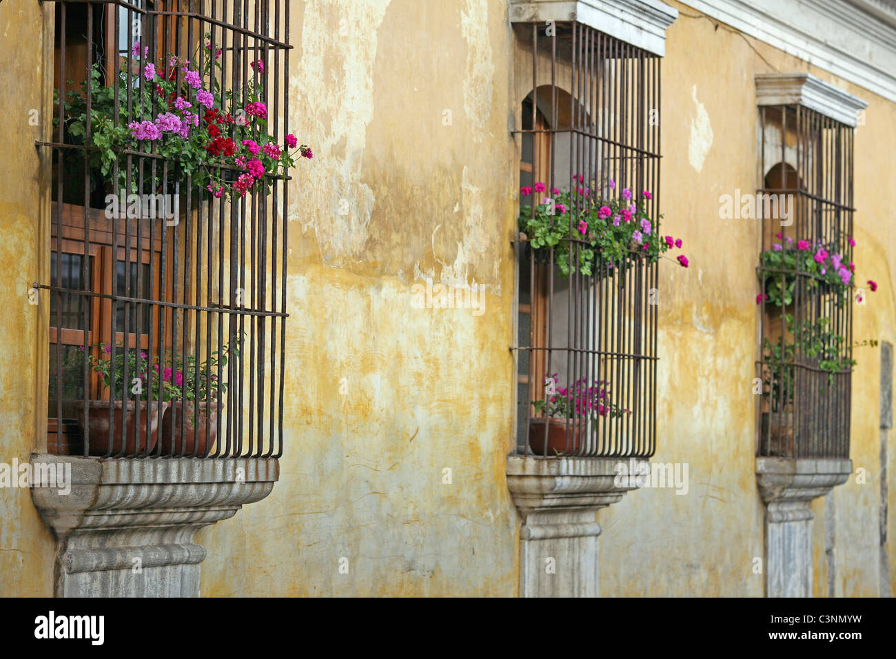 Flowers In Street Front Windows Antigua Guatemala Sacatepequez