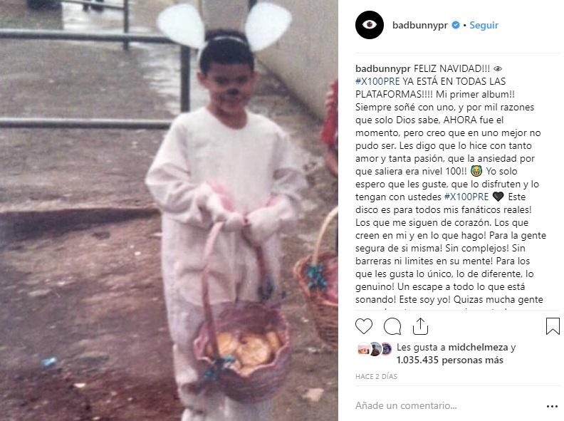 Foto de bad bunny de nino vestido de conejo. Tras soltar algunos exitos bad bunny firmo con hear this music compania de. Su apodo de conejo malo nace por una foto de nino con un disfraz de conejo. Ultima cancion de bad bunny no vas a creer el valor de su traje gucci. Bad bunny que traducido significa literalmente conejo malo le ha dado ese toque de personalizad indiscutible que tanta falta hace en la industria musical hoy en dia. El nombre de bad bunny viene de su infancia y hace referencia a una foto de cuando era nino vestido de conejo con cara de pocos amigos. Como hacer el conejo malo y bad bunny nelson ailton flores chavez. El nombre bad bunny salio de un disfraz que me puso mi mama cuando era nino. 50 videos play all mix 15 cosas que quizas no sabias de bad bunny fotos de nino youtube 18 cosas que quizas no sabias de arcangel duration. Bad bunny gets surprised with bunnies. En este video encontraras lo que es el estilo de vida de bad bunny el conejo malo en un solo video si te gusta comparte y suscribete para mas videos como este. De donde salio ese nombre. De ahi fue que salio. El cantante nominado a los premios latin grammy conto en una entrevista para la emisora beats 1 de donde surgio la idea de su apodo ademas de la llamada que le hicieron y que le dio la. Su nombrebad bunnyque se traduce del ingles al espanol como conejito maloviene por una foto de infancia en la escuela vestido de conejo pero con cara de no estar muy contento. Estaba buscando un nombre y me tope con esa foto donde me veo con una cara de enojo pues me disfrazaron asi para el dia de easter y yo no queria.