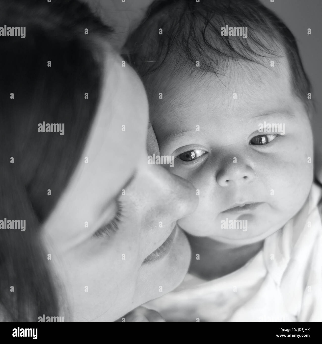 Negro Blanco Imagen De Amoroso Madre Sostiene Recien Nacido Bebe