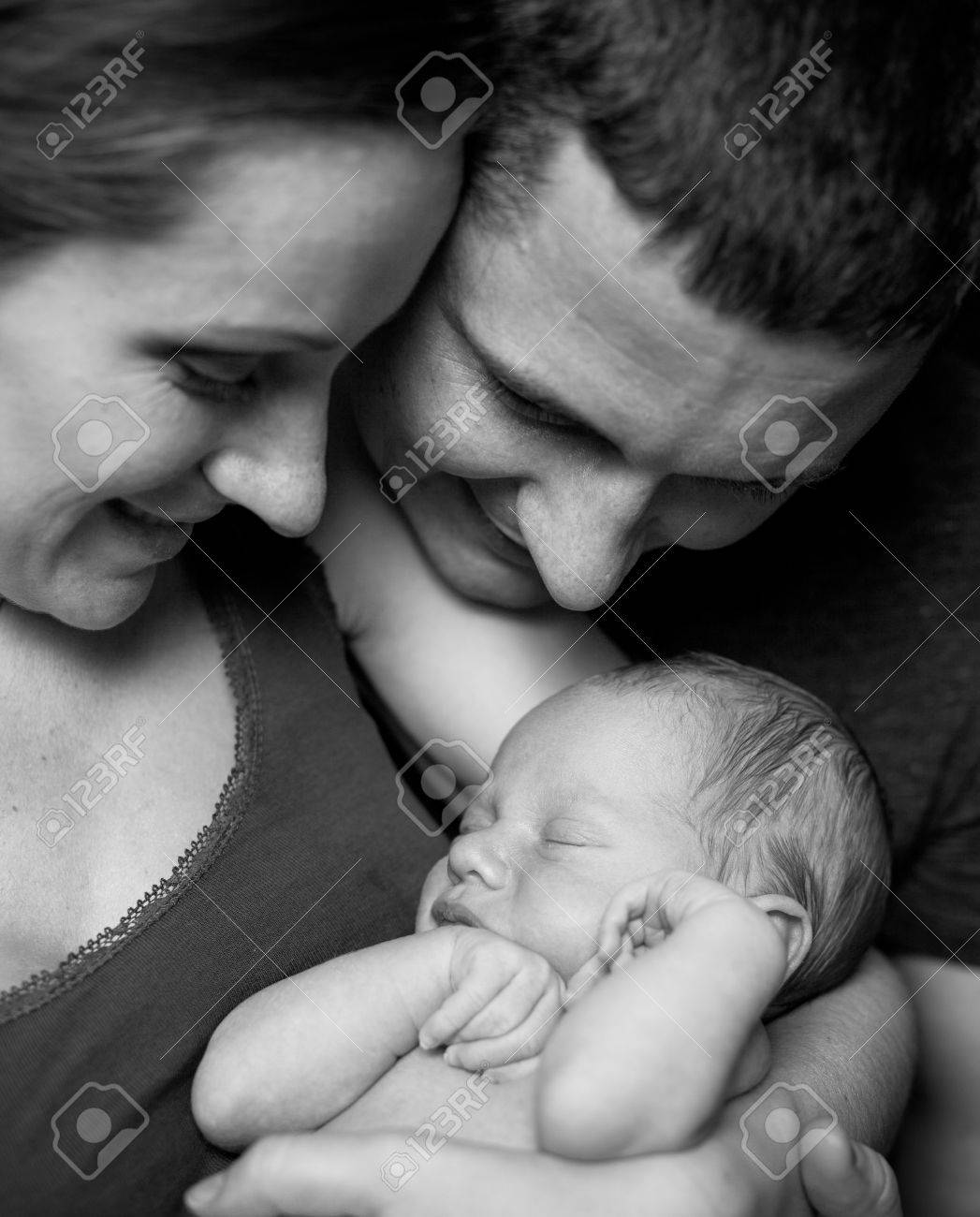 Retrato De Padre Holding Recien Nacido Bebe Blanco Y Negro