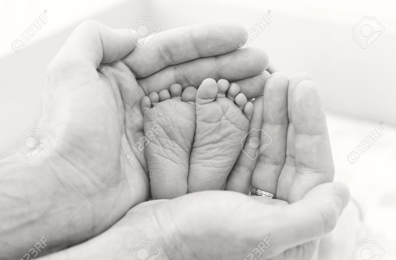 Manos Pies Bebe Recien Nacido En Blanco Y Negro Fondos De