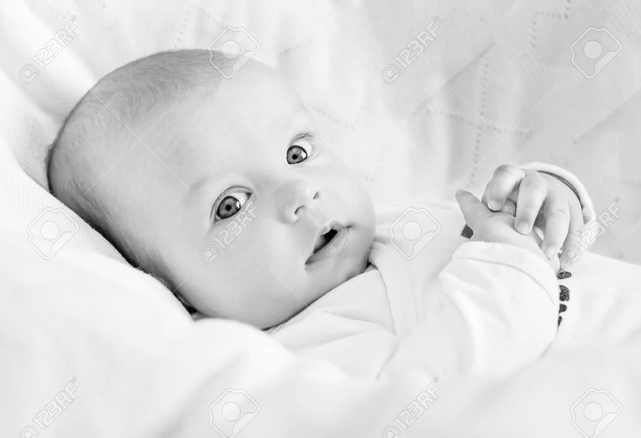Lindo Bebe Recien Nacido En La Cama Blanco Y Negro Fotos