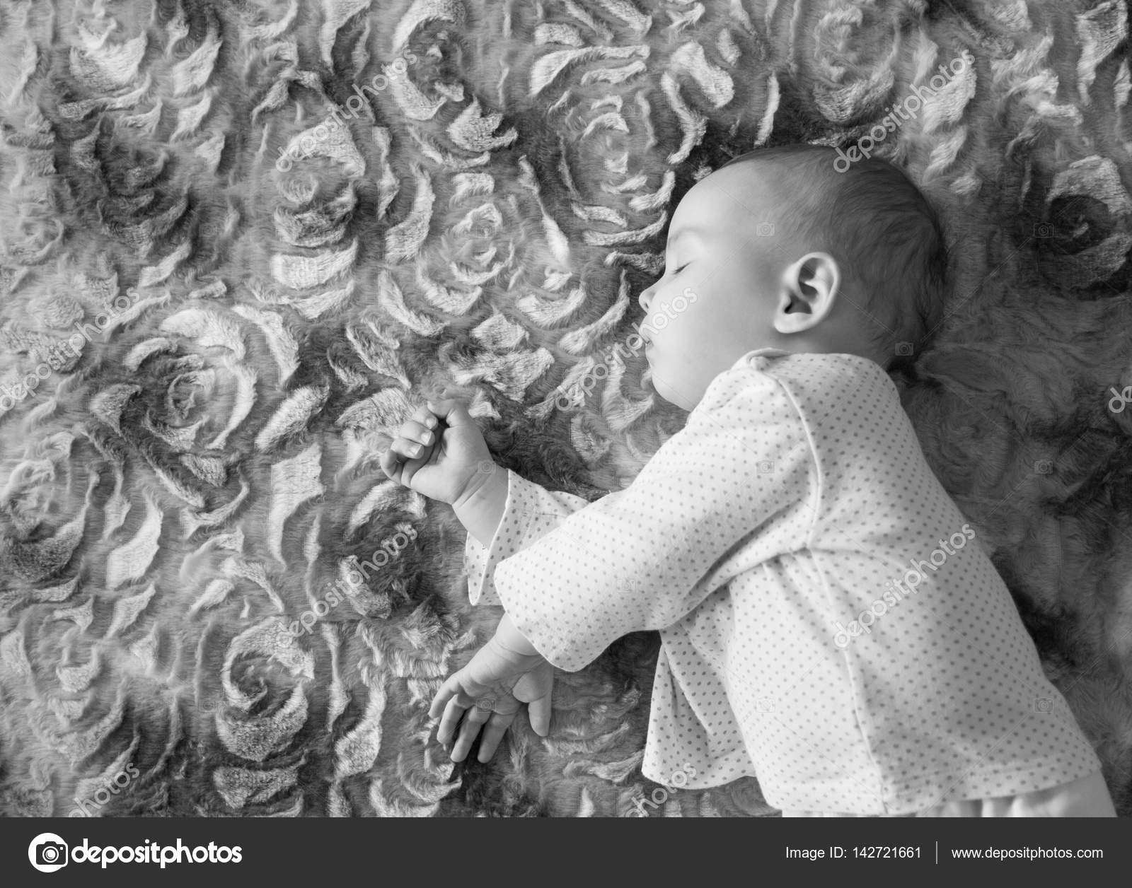 Imagen En Blanco Y Negro De Bebe Recien Nacido Duerme En Un Patron