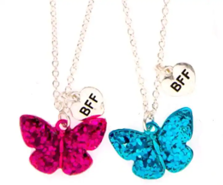 Brillantina Caliente Rosa Azul Mariposa Bff 2 Collar Colgante