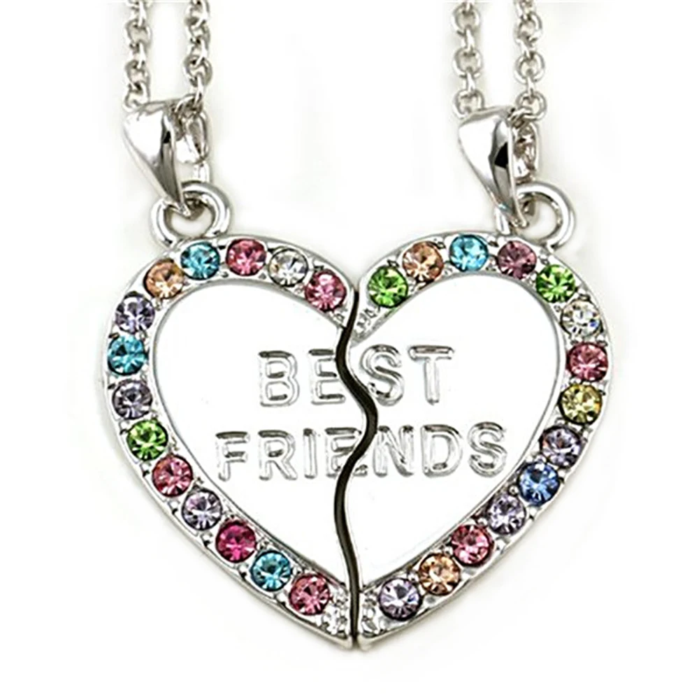 Best Friends Bff 2 Pc Rhinestone Heart Necklace Set Friend