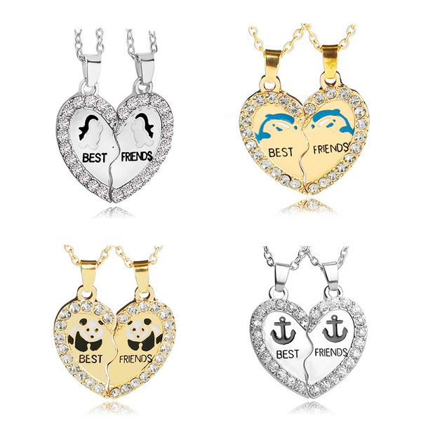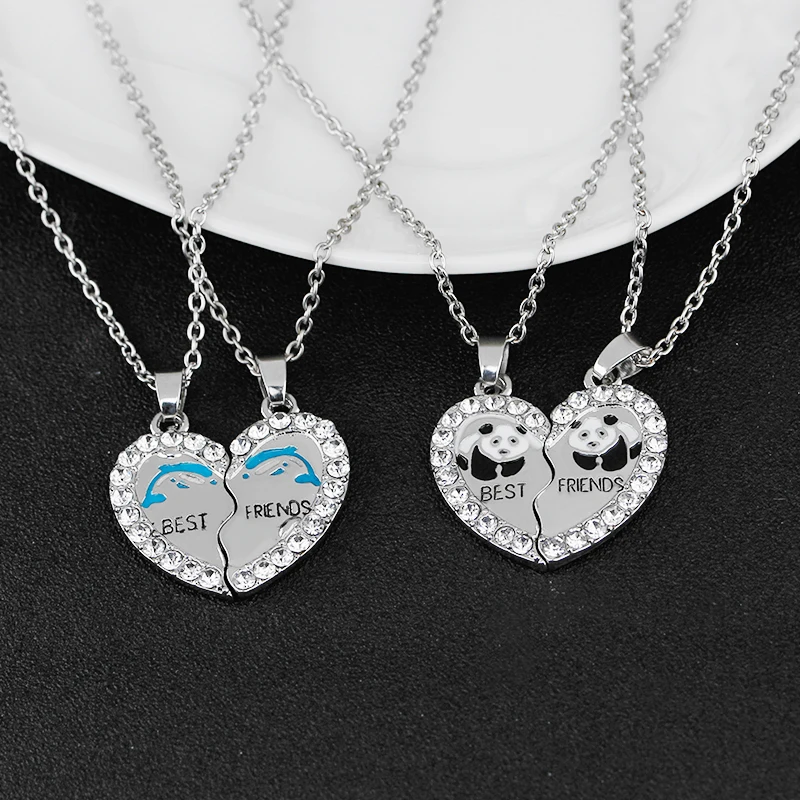 Mejor Amigo De Moda Corazon Rhinestone 2 Colgantes Collares Bff