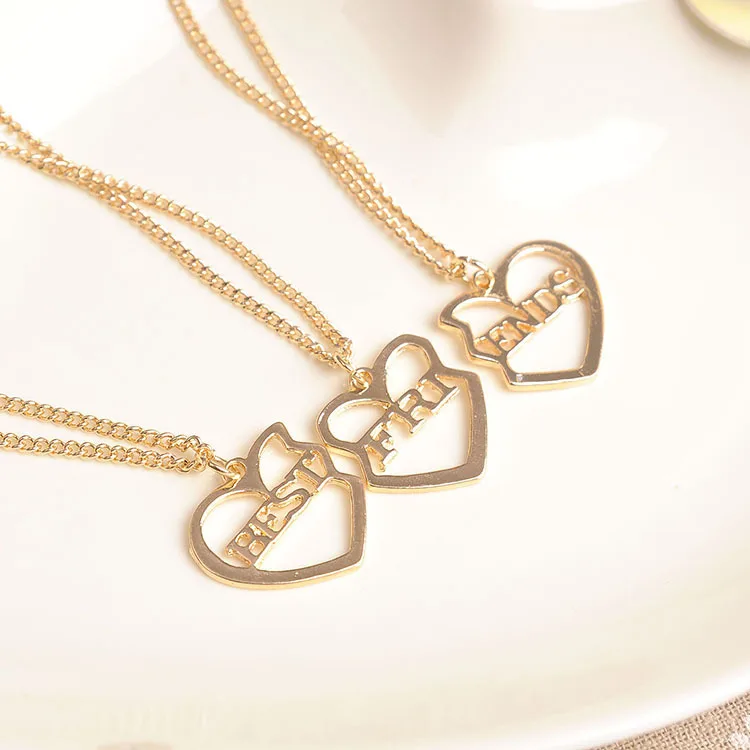 Mejor Amigo Corazon Plata Oro Estras 2 Colgante Collar Bff Regalos