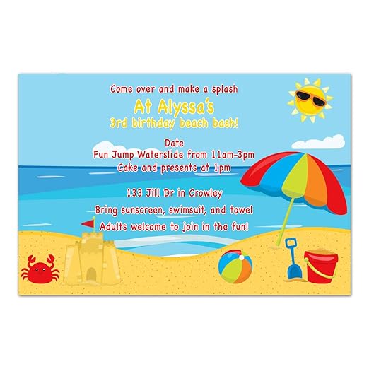 30 Invitaciones Personalizadas Para La Playa Verano Cumpleanos