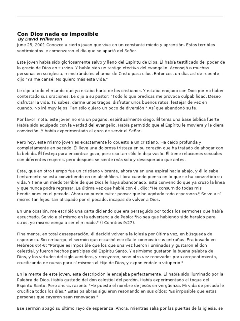 Con Dios Nada Es Imposible By David Wilkerson