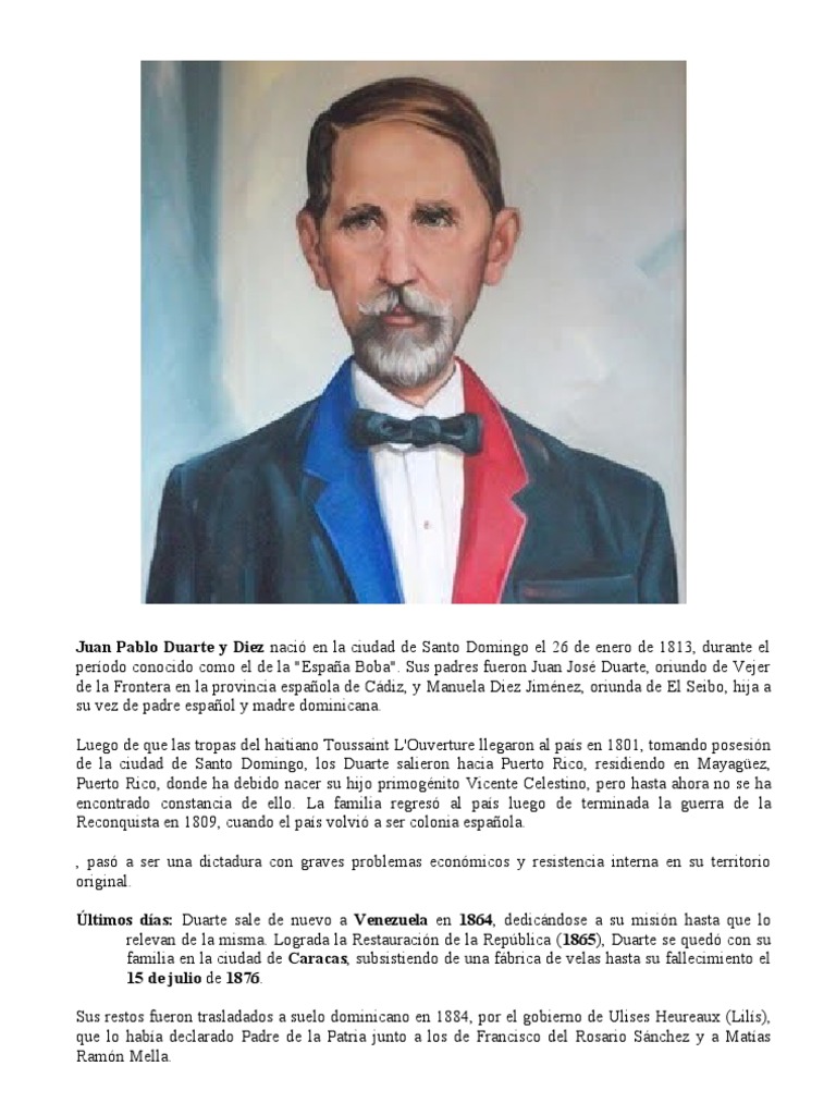 Juan pablo duarte y diez 26 de enero de 1813 ciudad colonial santo domingo espana colonial.