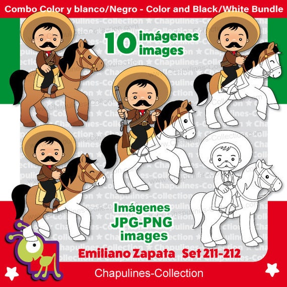 Emiliano Zapata Riding A Horse Clipart Color And Black White Etsy