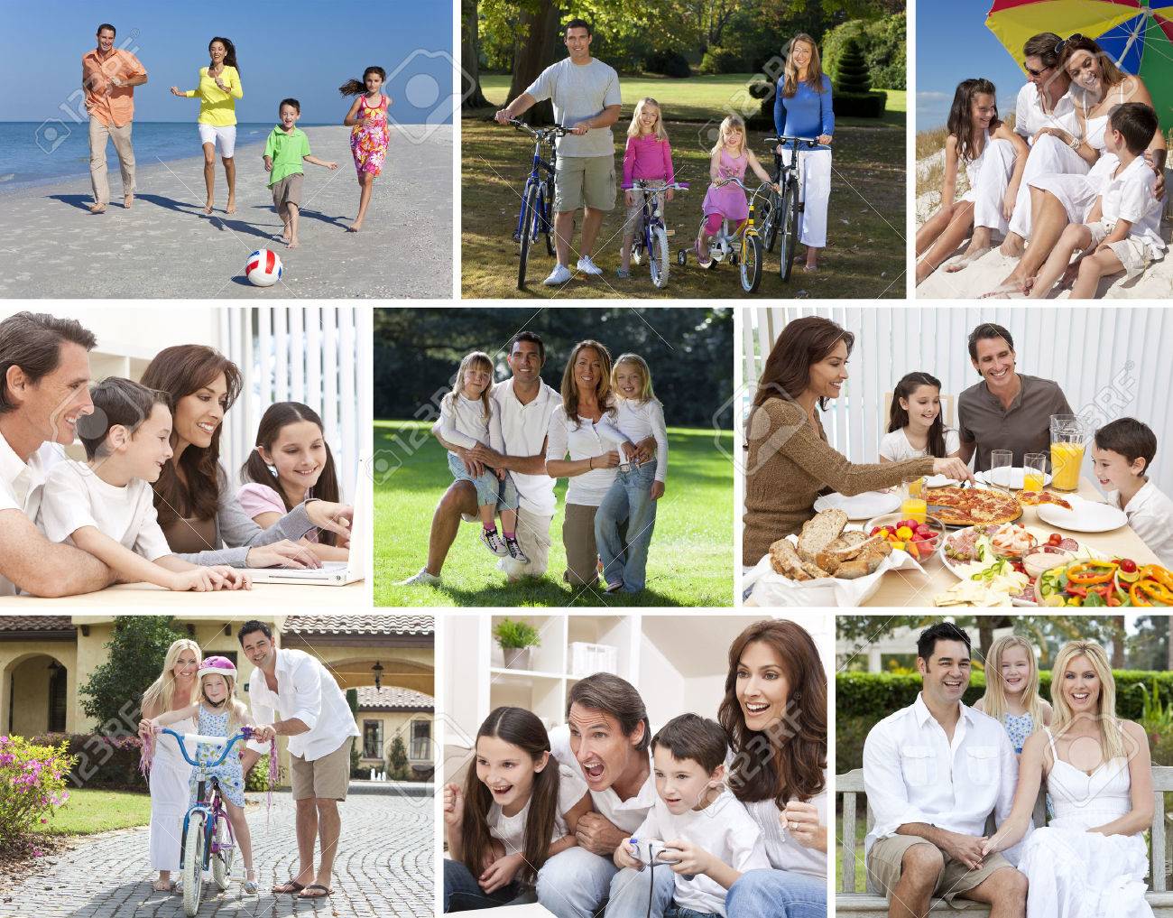 Montage Familias Felices Padres Y Los Ninos Los Ninos Y Ninas Que