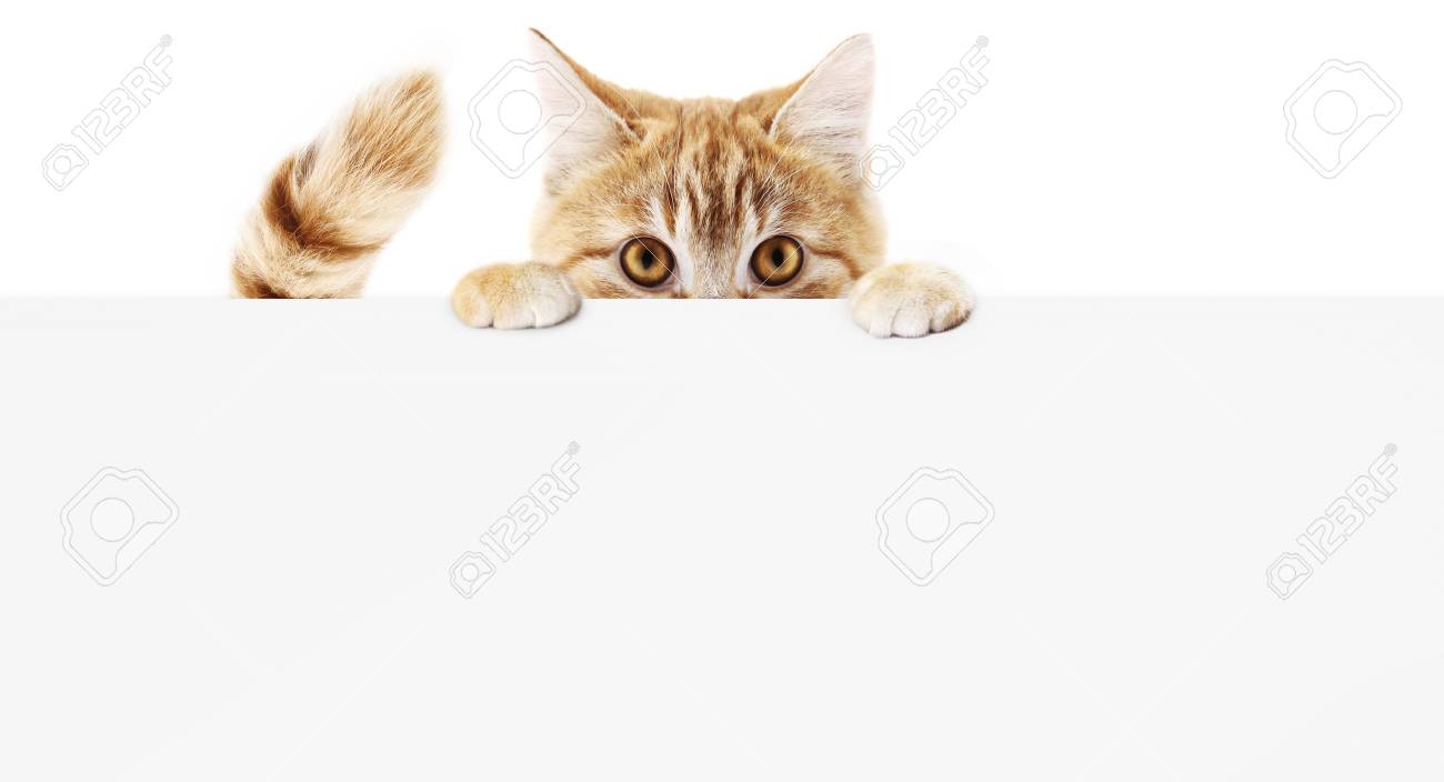 Gato Engracado Do Animal De Estimacao Que Mostra Um Cartaz Isolado