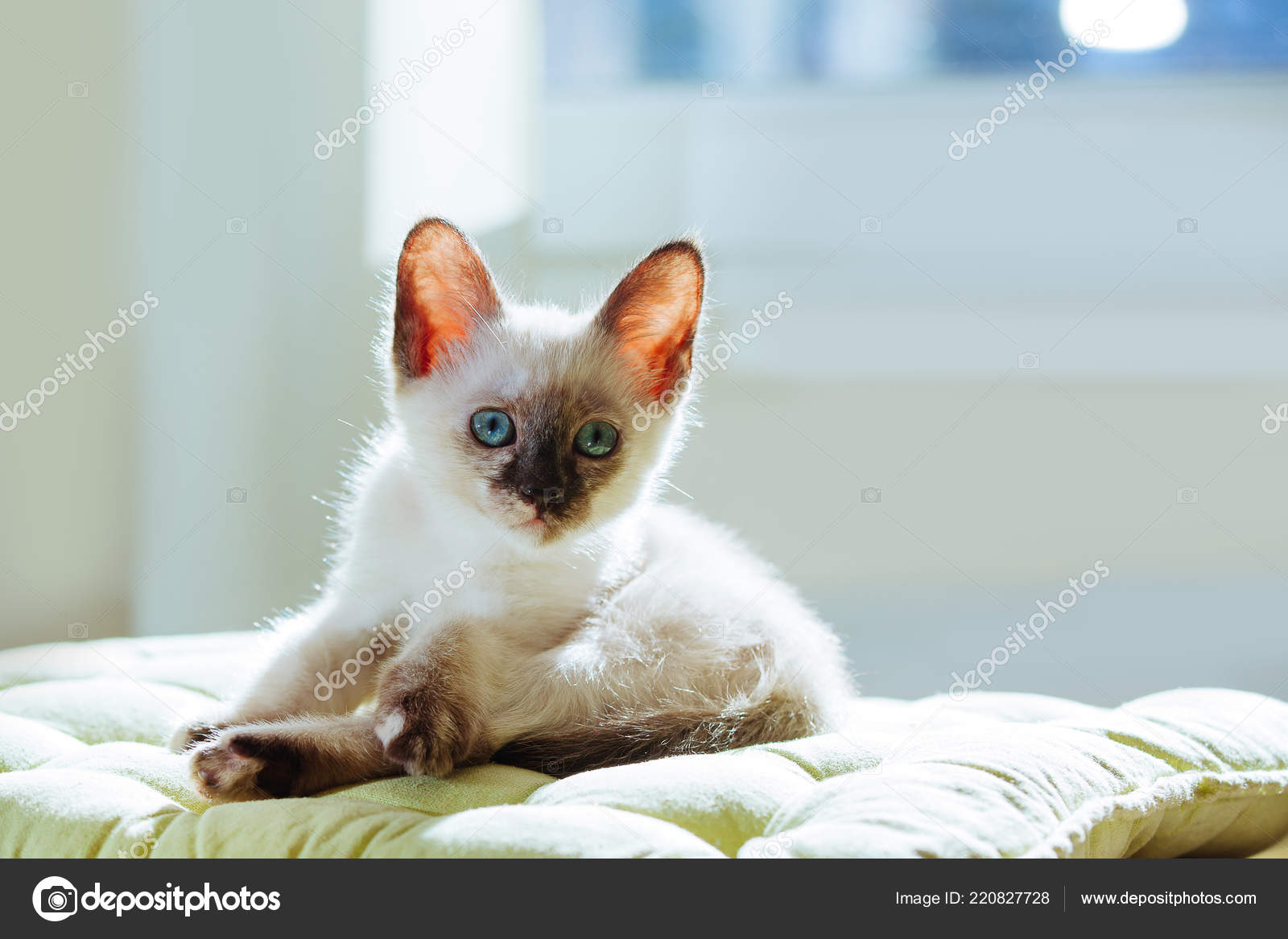 Gatinho Raca Tailandesa Raios Sol Gato Engracado Com Olhos Azuis