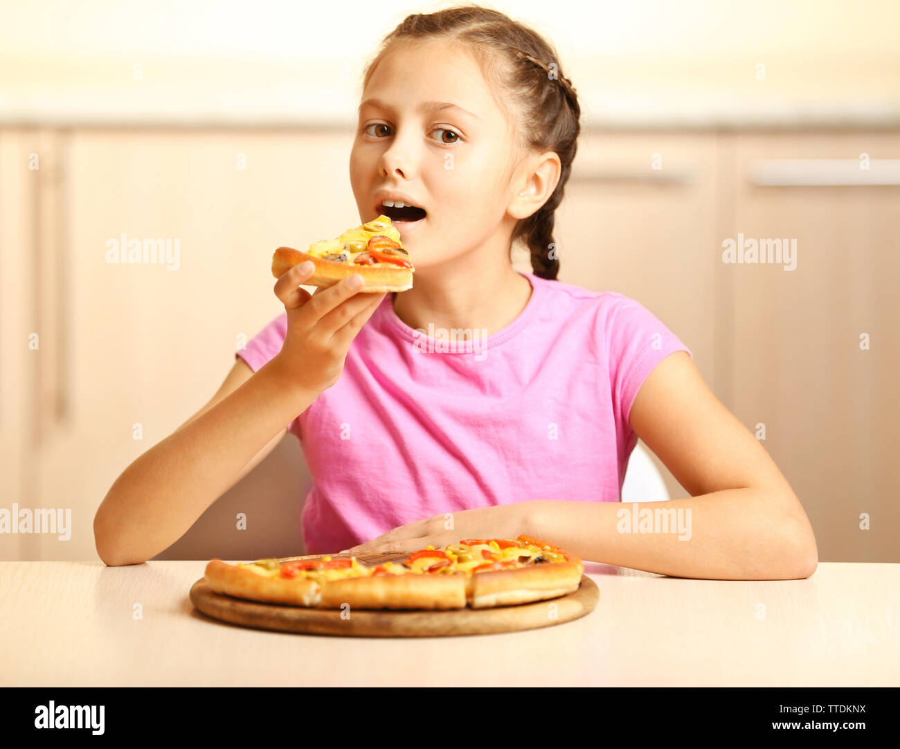 Nina Comiendo Pizza En Casa Foto Imagen De Stock 255997782 Alamy