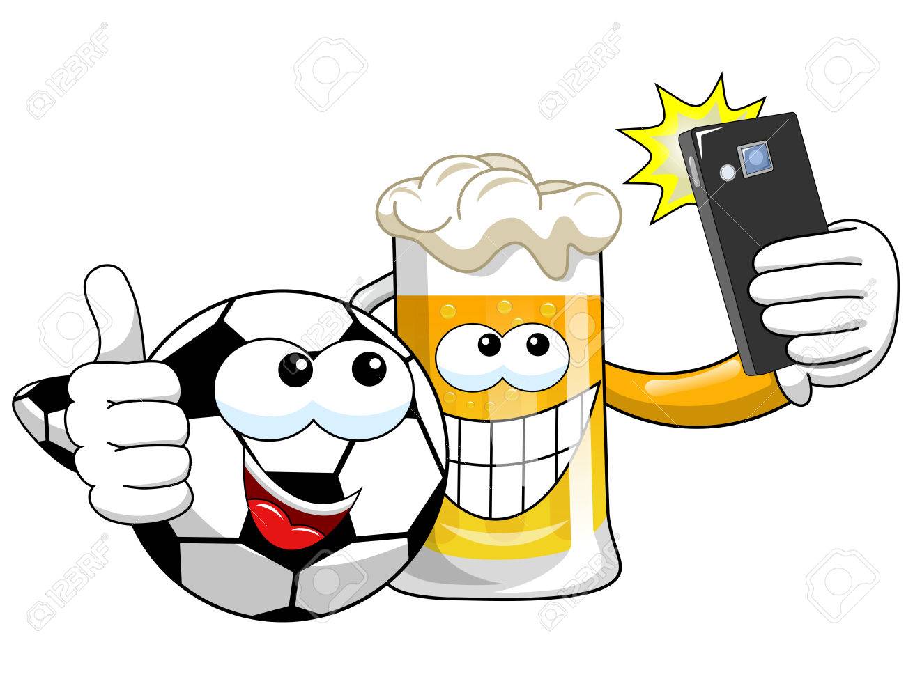 Dibujos Animados De Cerveza Y Balon De Futbol Tomando Selfie Con