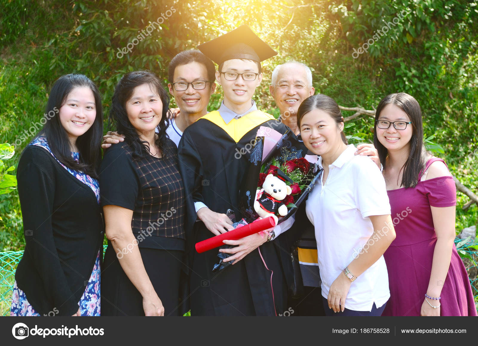 Familia Asiatica Celebrar La Graduacion De Un Familiar Fotos