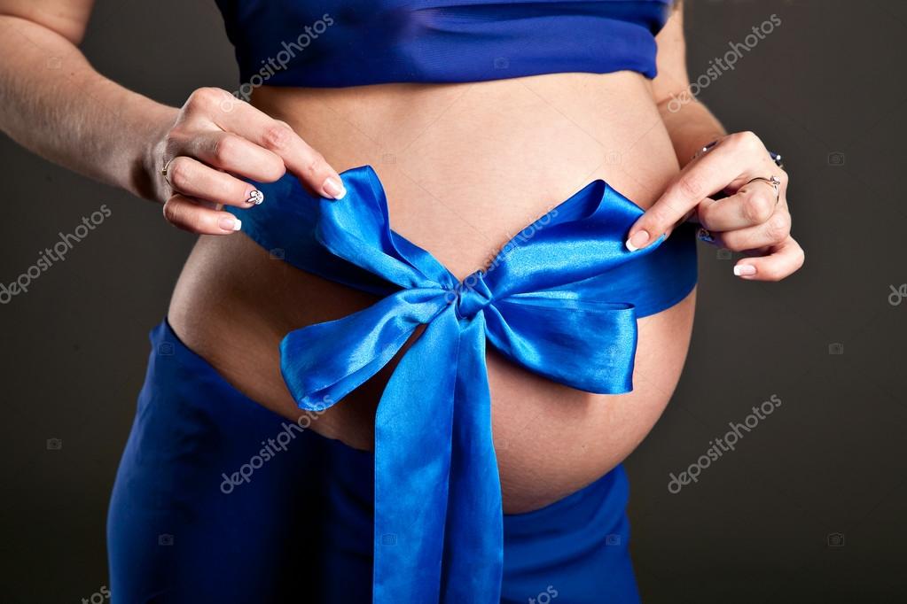 Foto De Blue Laco Na Barriga De Uma Mulher Gravida E Mais Fotos De