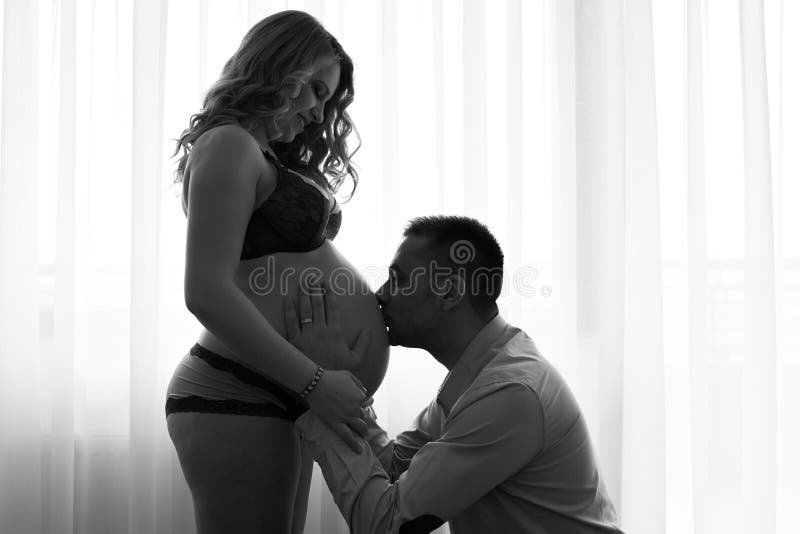 Mulher Gravida Preto E Branco E Seu Marido Foto De Stock Imagem