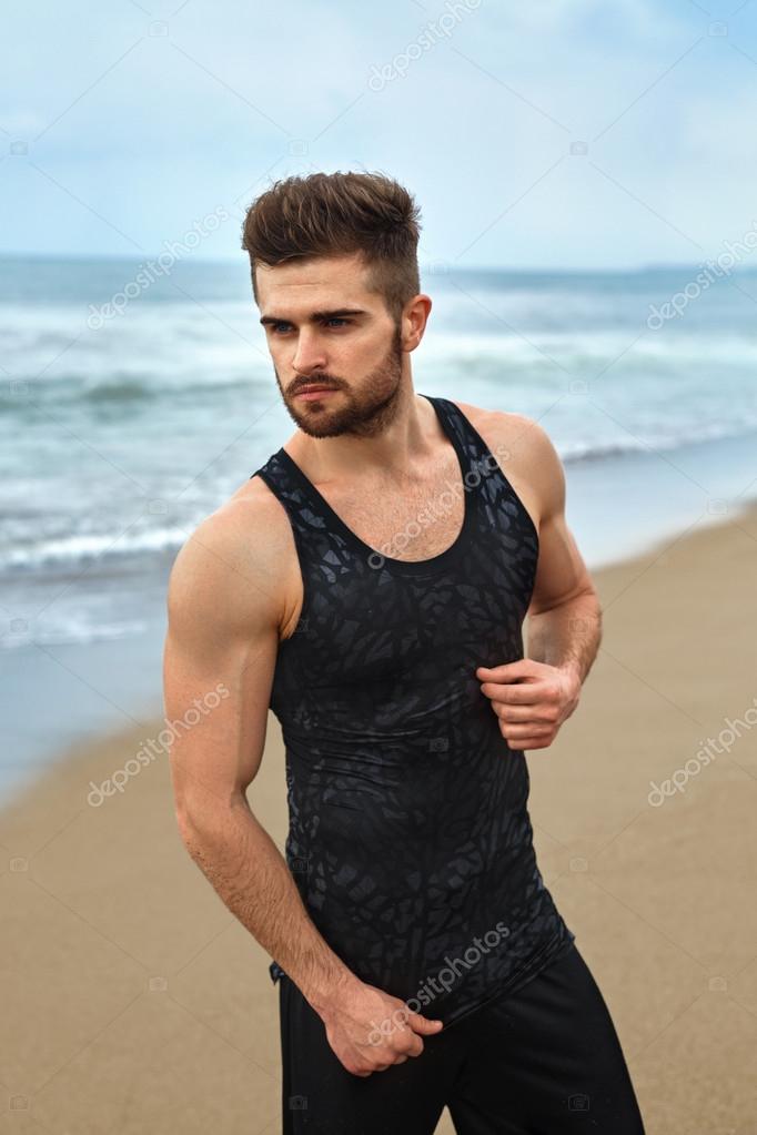 Bonito Ajustar Homem Praia Banco De Imagem K8736493 Fotosearch