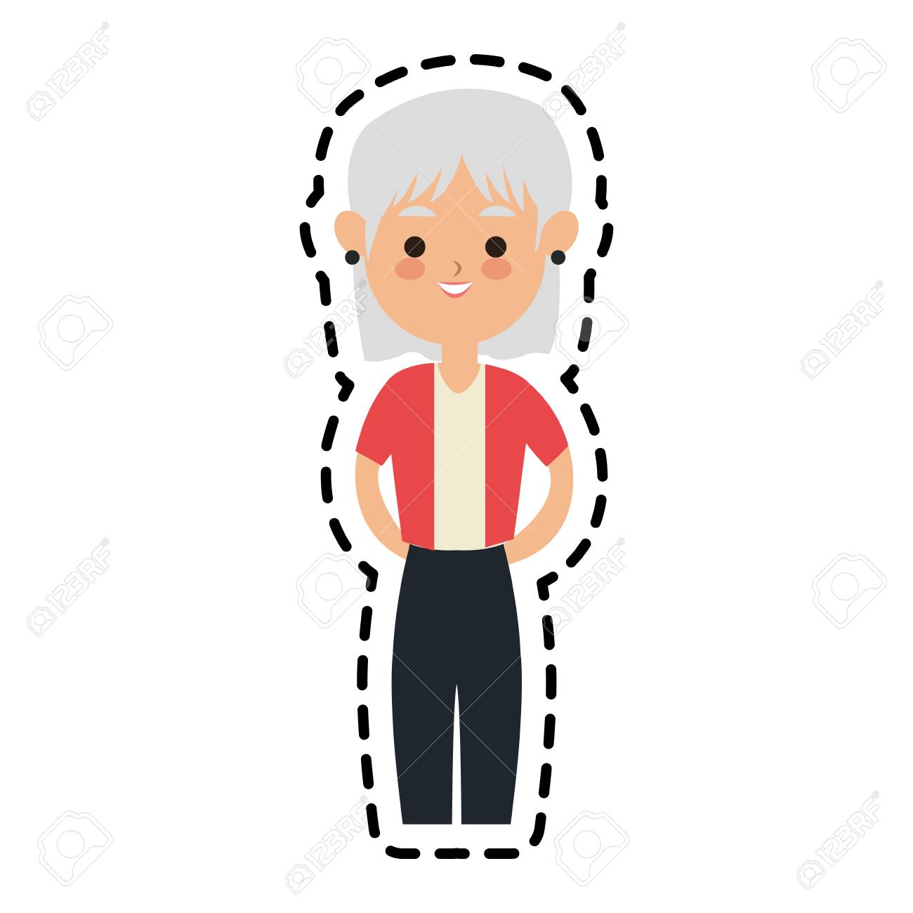 Mulher De Cabelo Grisalho Idoso Bonito Dos Desenhos Animados Icone