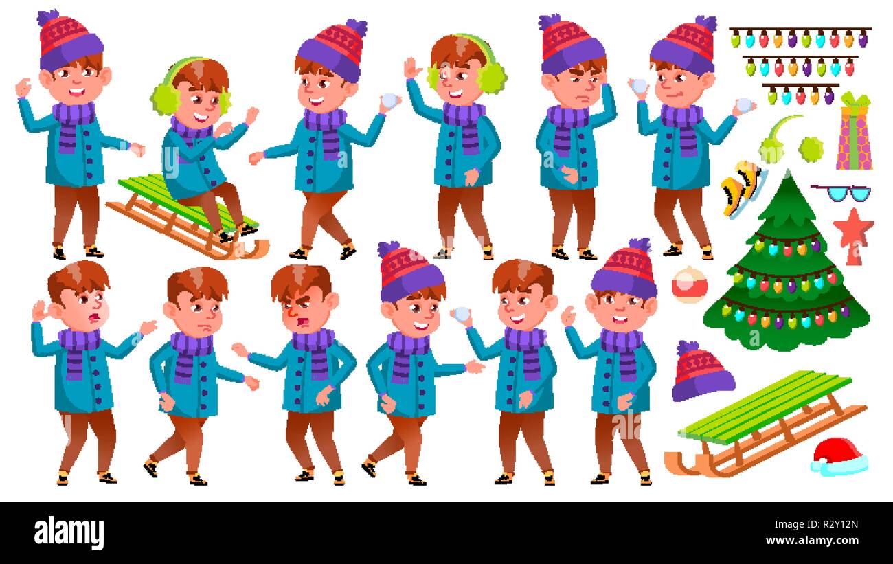 Boy Kid Plantea Establecer Vector Vacaciones De Invierno La