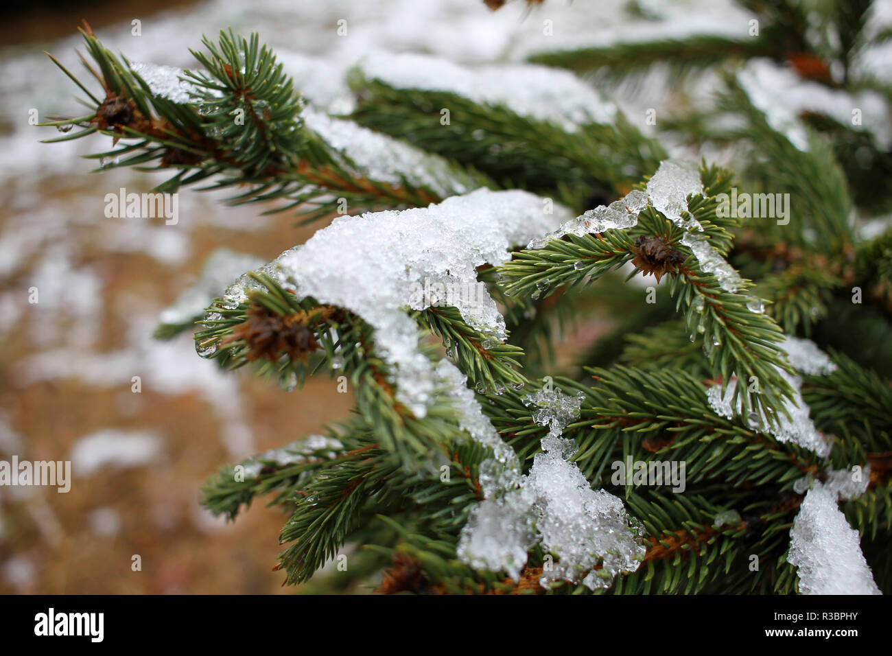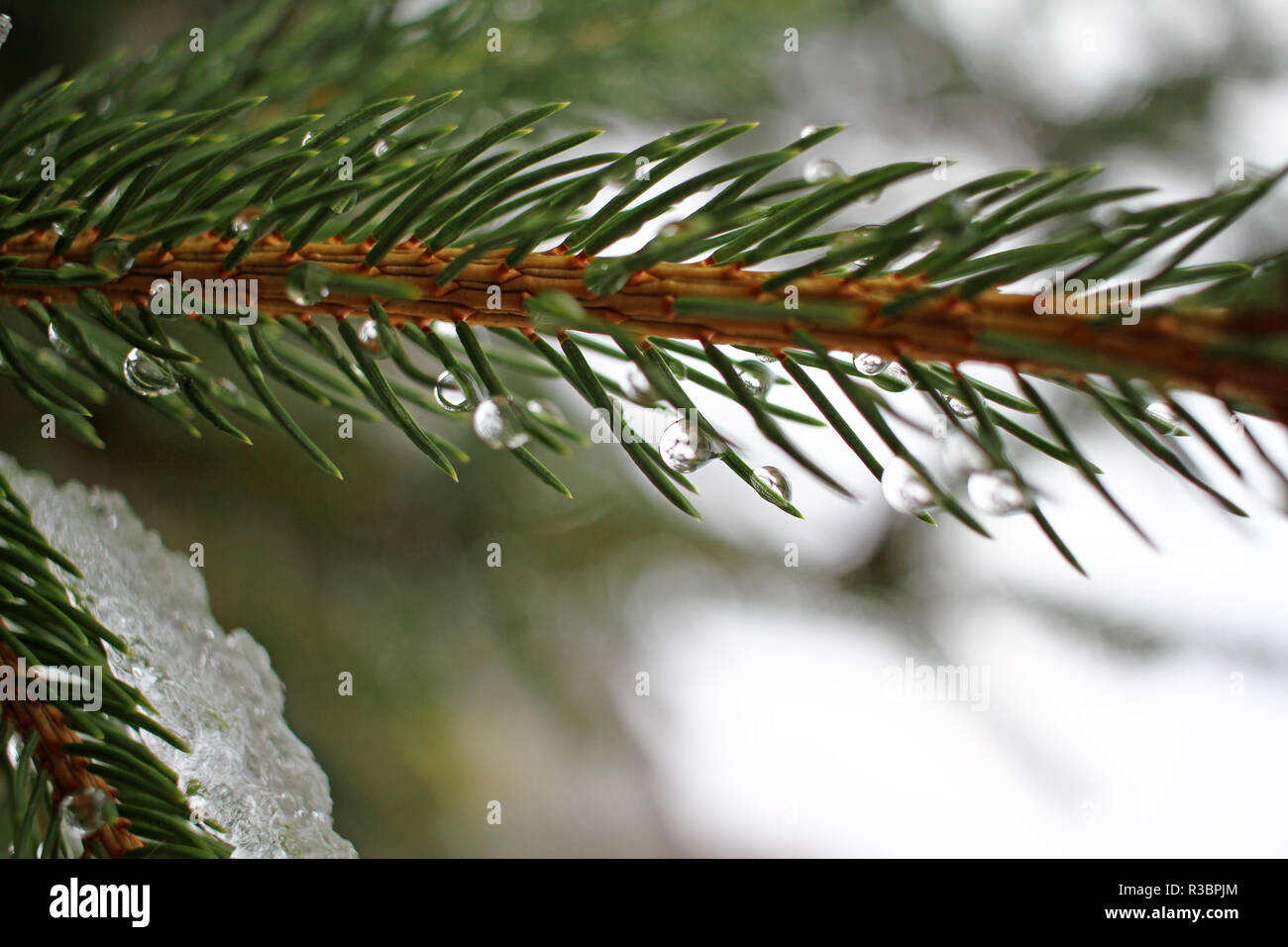 Vista Cercana De La Rama De Un Arbol De Navidad Con Nieve Papel