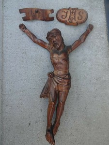 Antigo De Madeira Esculpida Em Corpo De Jesus Cristo Com Inri