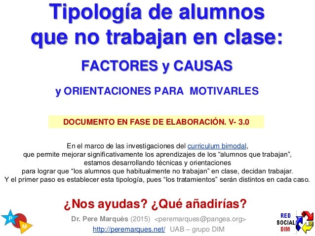 Tipologia De Los Alumnos Que No Trabajan En Clase Y Orientaciones Par