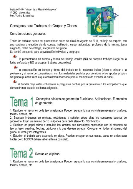Consignas Para Tp De Grupos Y Clases Geometria Instituto Virgen